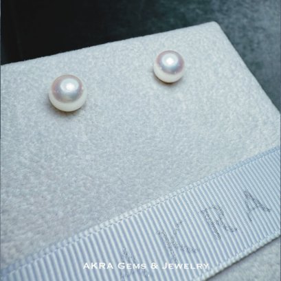 A pair of 8 mm Japanese Akoya Pearls set in stud earrings setting Gems: 8mm Japanese Akoya Pearl Setting Sterling Silver 925 Plated: Yellow Gold