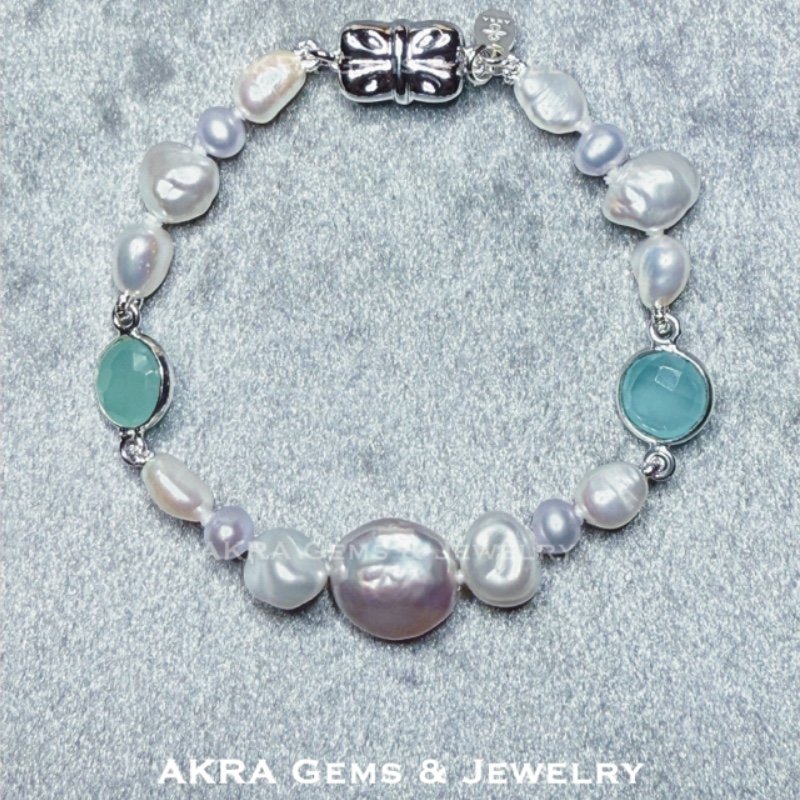 (Custom Made) Mixture of pastel freshwater pearls and gemstones Bracelet 6 Inches