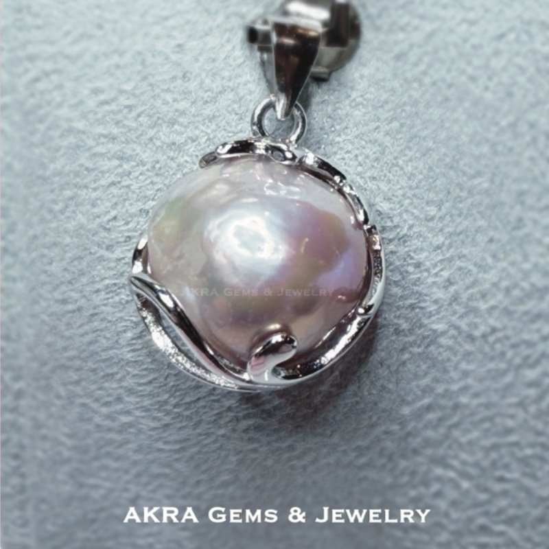 Pink Fruit Pendant made from 12mm Unicorn Pink Baroque Freshwater Pearl set on Vine Sterling Silver 925